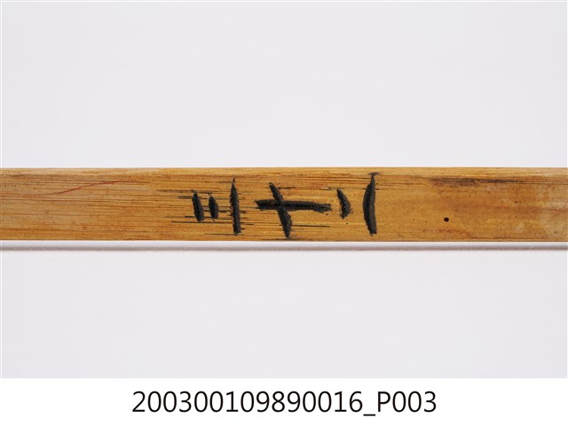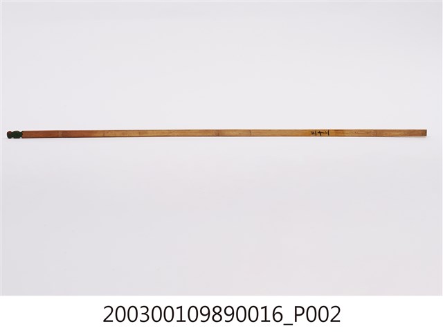 本件籤以竹片製成,形狀細長,頂端刻成葫蘆狀並漆上綠色,當搗籤時容易識別抽取。末端有「三十二」字樣。依據籤的編號,可以找到籤詩。抽籤是占卜的其中一種方式,從商朝人就已開始運用龜甲、牛骨進行占卜;最晚於宋代就已經出現的籤詩是當時文人雅士參與抽籤活動時,所編寫的一些附會詩詞。