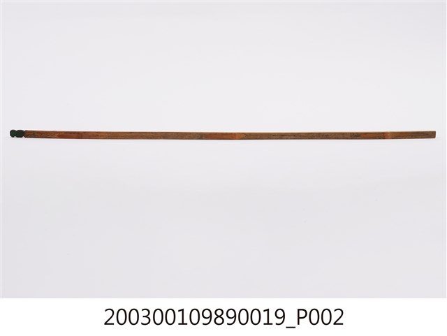 本件籤以竹片製成,形狀細長,頂端刻成葫蘆狀並漆上綠色,當搗籤時容易識別抽取。末端有「三十八」字樣。依據籤的編號,可以找到籤詩。抽籤是占卜的其中一種方式,從商朝人就已開始運用龜甲、牛骨進行占卜;最晚於宋代就已經出現的籤詩是當時文人雅士參與抽籤活動時,所編寫的一些附會詩詞。