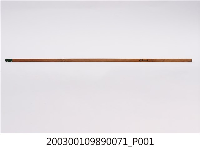 本件籤以竹片製成,形狀細長,頂端刻成葫蘆狀並漆上綠色,當搗籤時容易識別抽取。末端有「百四十二」字樣。依據籤的編號,可以找到籤詩。抽籤是占卜的其中一種方式,從商朝人就已開始運用龜甲、牛骨進行占卜;最晚於宋代就已經出現的籤詩是當時文人雅士參與抽籤活動時,所編寫的一些附會詩詞。