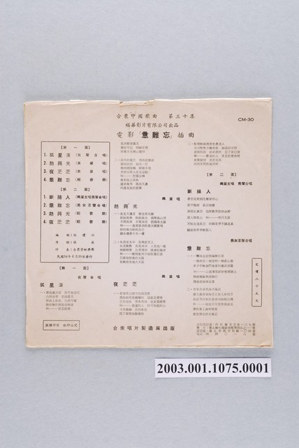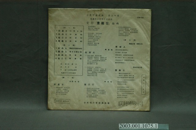 合眾唱片公司發行編號「CM-30」華語歌曲專輯《意難忘》