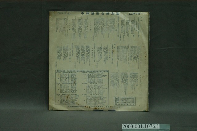 惠美唱片公司發行龍虎商標編號「LLP-111」日語歌唱專輯《小林旭來台紀念歌》10吋塑膠唱片