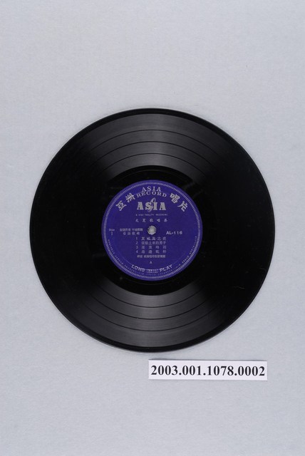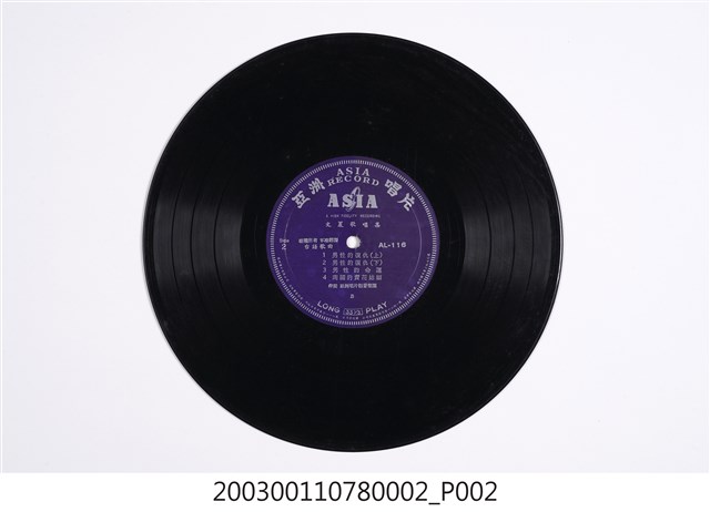 亞洲唱片公司發行編號「AL-116」臺語歌曲專輯《文夏歌唱集》10吋塑膠唱片