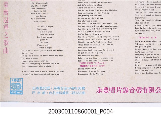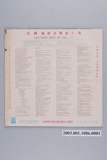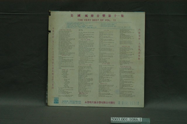 永豐唱片公司發行編號「LF-6011」英語歌曲專輯《美國風靡音樂第十一集》