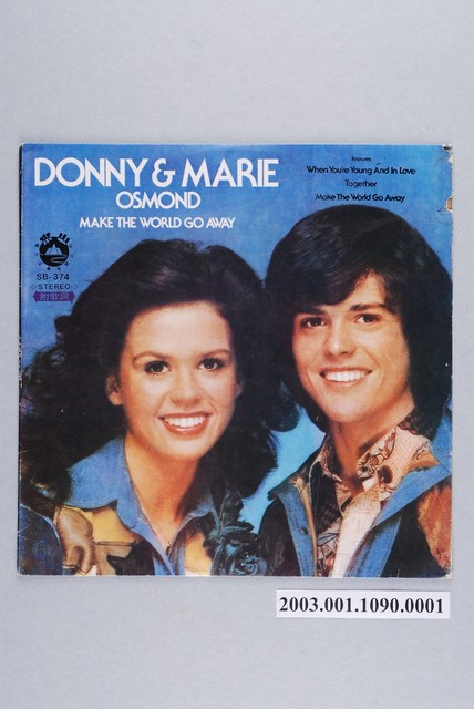 山水唱片企業有限公司發行編號「SB-374」英語歌曲專輯《冠軍之星第74集:唐尼與瑪莉奧斯蒙合唱最新金唱片集》