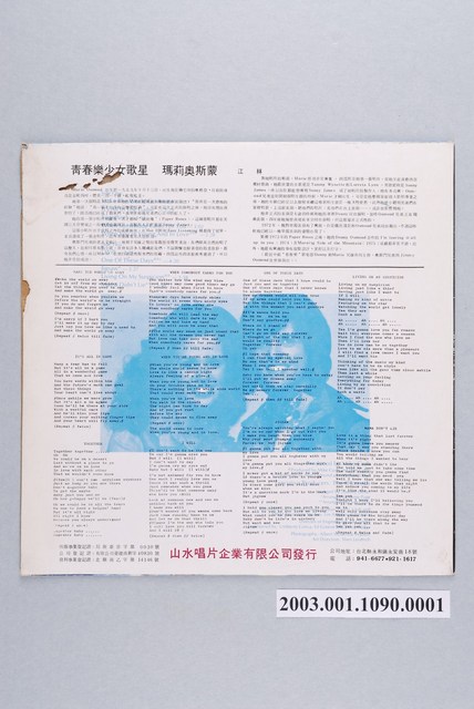 翻版重製(美國Polydor唱片公司製作發行)、Donny&Marie Osmond(奧斯蒙兄妹)演唱、山水唱片公司發行