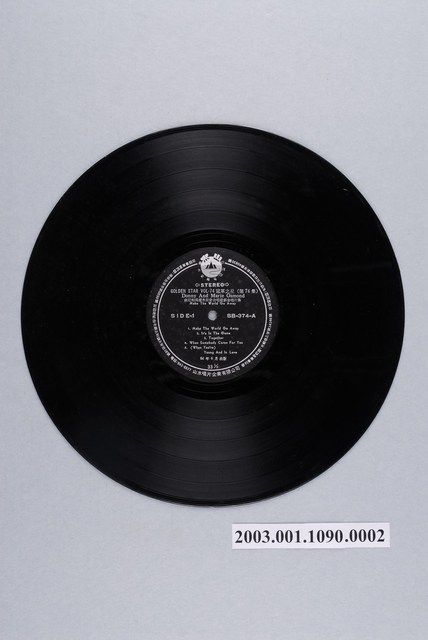 山水唱片企業有限公司發行編號「SB-374」英語歌曲專輯《冠軍之星第74集:唐尼與瑪莉奧斯蒙合唱最新金唱片集》12吋塑膠唱片