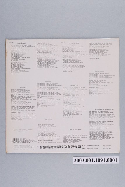 合眾唱片公司出品編號「TD-1864」西洋歌曲專輯《青春樂電視音樂劇全部插曲》