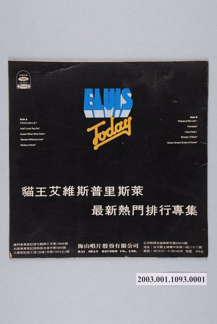 2003.001.1093.0002 海山唱片公司發行編號「HS-3013」《貓王艾維斯普里斯萊最新熱門排行專集》12吋塑膠唱片