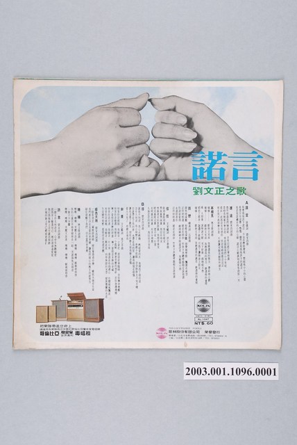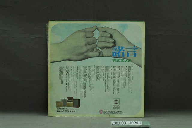 歌林唱片公司發行編號「KL-1047」華語歌曲專輯《劉文正之歌:諾言》唱片封套