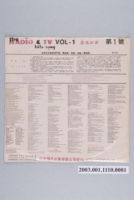 山水唱片企業有限公司發行編號「SB-901」英語歌曲選輯《廣播熱門歌選第一集》