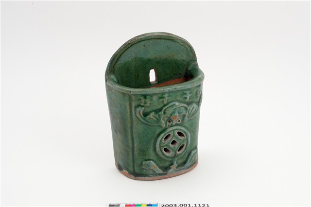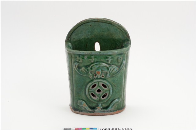 2003.001.1121 綠釉半橢圓形百子千孫筷筒
