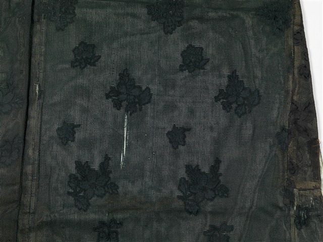 2. 此件服裝雖沒有精緻的鑲緄和扣子變化,但從布料材質可以判斷應屬於禮服用服飾,因絲質材料不易保存,有多處脆化破損痕跡。此文物來自臺中清水楊肇嘉家族。