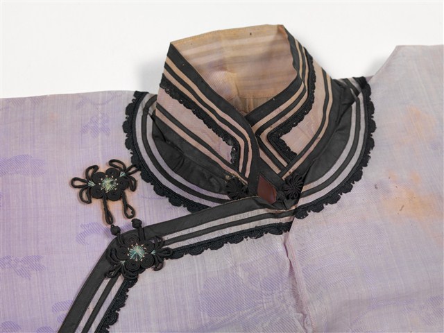2003.003.0014 白絲質緹花高立領大襟女衫