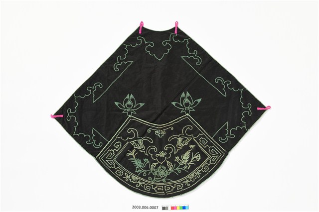 2003.006.0007 黑地彩繡牡丹紋菱形肚兜