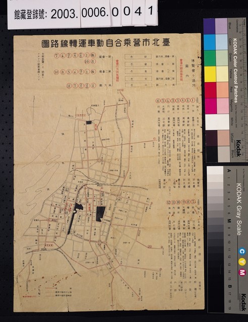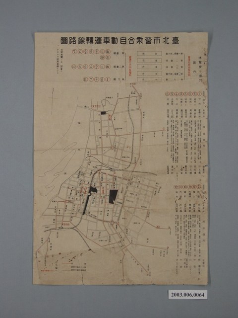 2003.006.0064 盛進商事會社〈臺北市營乘合自動車運轉路線圖〉