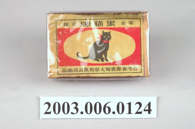 1.本物件為臺灣省專賣局火柴有限公司出品之黑貓牌安全火柴,火柴盒為木質,外有包裝紙包覆,其商標為一隻黑貓,上方寫有「黑貓牌安全火柴」字樣,並標明由「台灣省專賣局火柴有限公司出品」。此盒火柴外有塑膠包裝,無法斷定為未開封或是經由後人包裝。