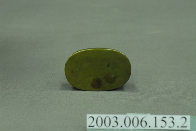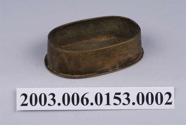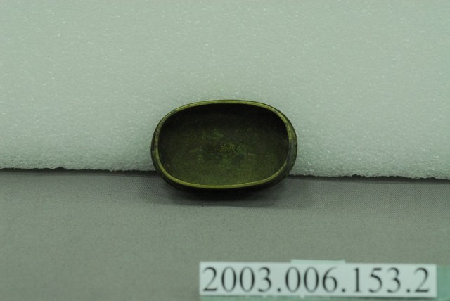 本物件為盛裝墨汁之銅製楕圓形墨盒之底層,墨盒可將墨汁盛裝後可方便攜帶使用。