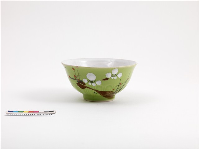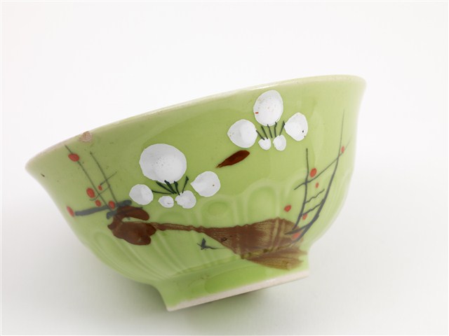 彩繪古木梅花紋綠釉碗