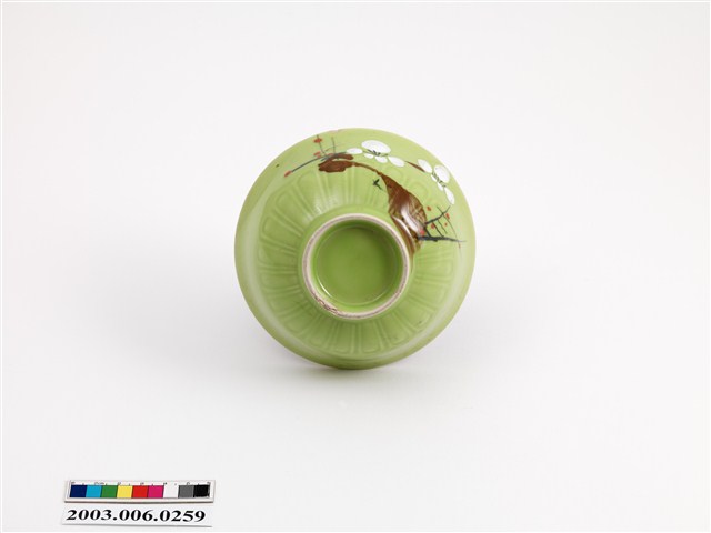 2003.006.0259 彩繪古木梅花紋綠釉碗