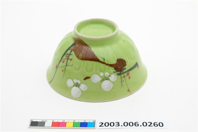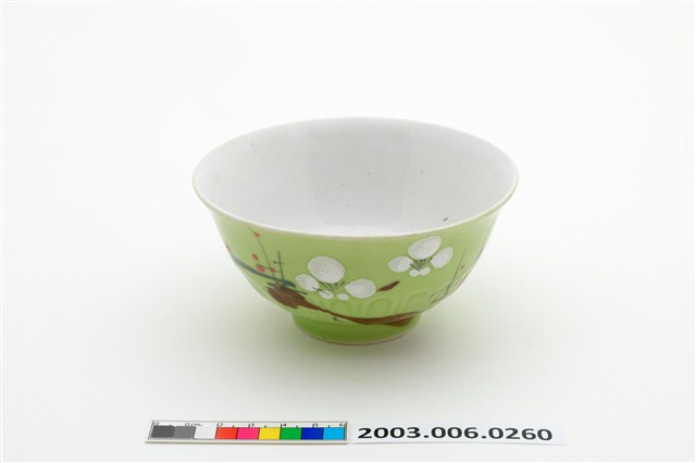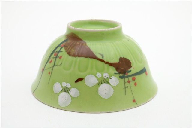 2003.006.0260 彩繪古木梅花紋綠釉碗