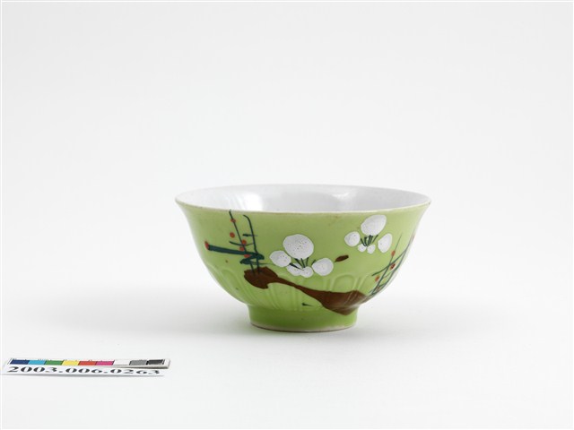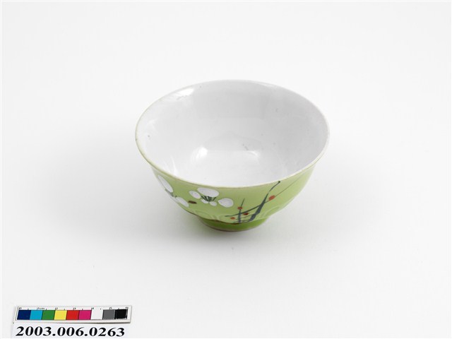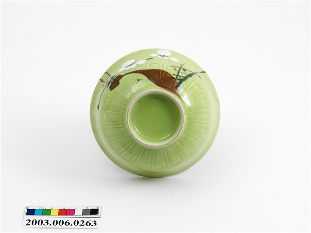 2003.006.0263 彩繪古木梅花紋綠釉碗