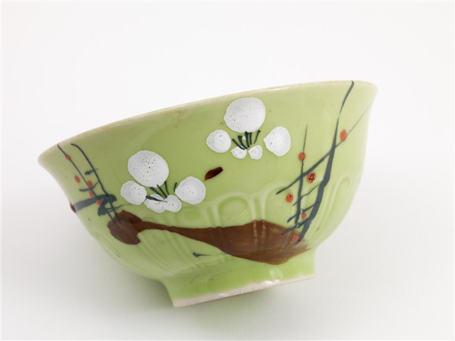 彩繪古木梅花紋綠釉碗