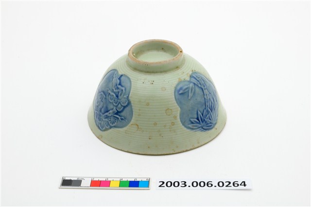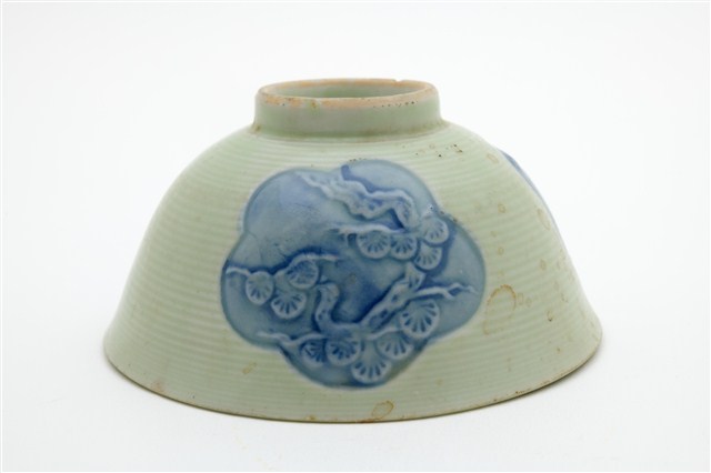 2003.006.0264 松竹梅花紋藍彩淡綠釉碗