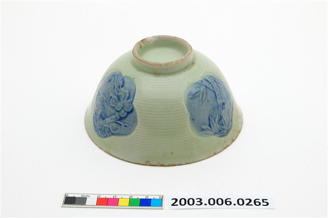 2003.006.0265 松竹梅花紋藍彩淡綠釉碗