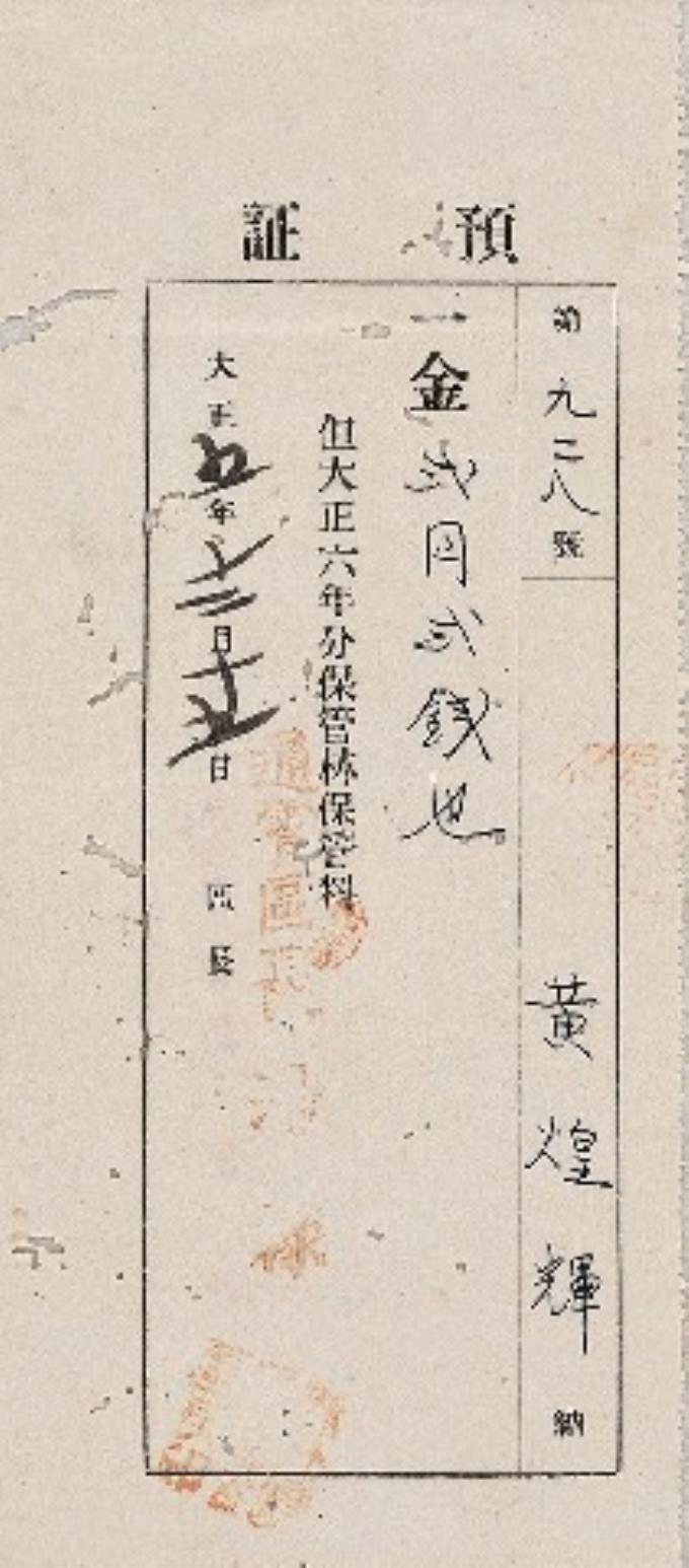 2003.007.0024.0015 大正6年分黃煌輝繳納官有森林保管料預證