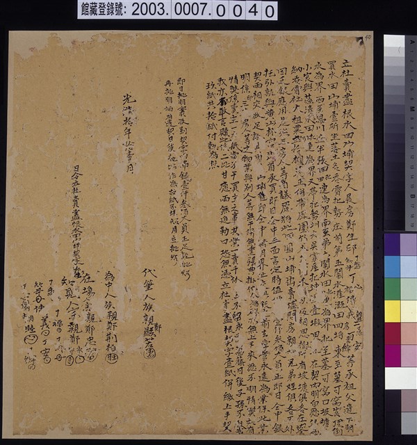 2003.007.0040 光緒10年鄭生印等立杜賣盡根水田山埔契字