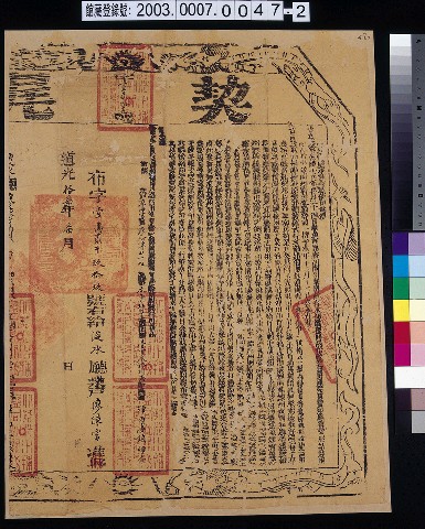 2003.007.0047.0002 道光17年淡水廳正堂給業戶陳富契尾