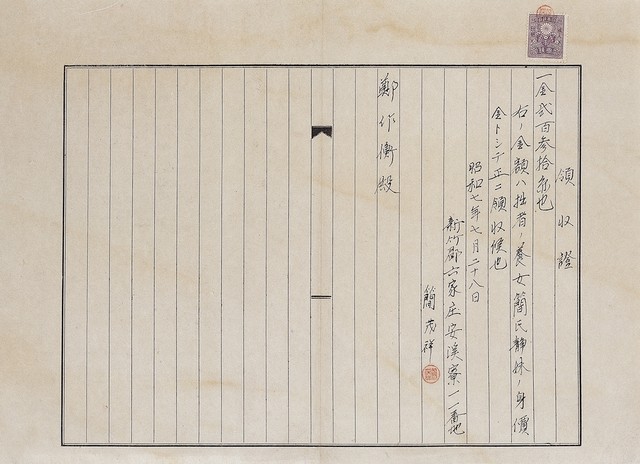 2003.007.0060 昭和7年養女簡靜妹人身賣斷收據