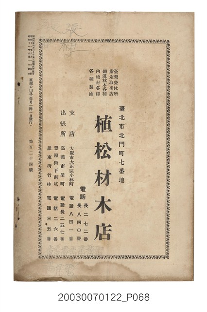 2003.007.0122 社團法人臺灣山林會發行《臺灣的山林》第124號