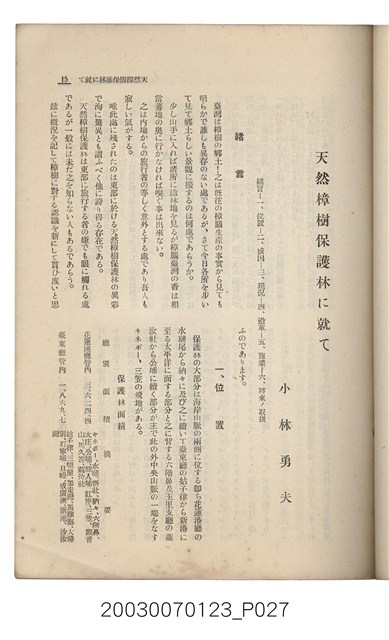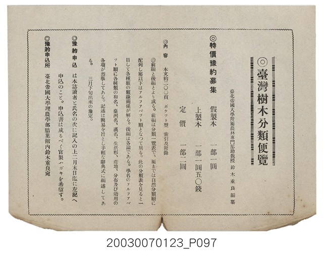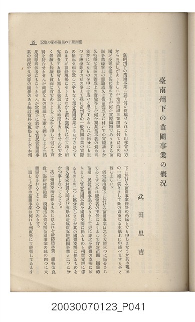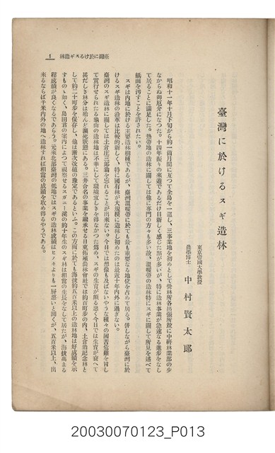 2. 本書原名為《臺灣山林會報》,最早發行於大正12年(1924),於第80期後更改為《臺灣の山林》。日治時期臺灣總督府為有效利用森林,於1925年實施了森林計劃,主要針對治水及國土保安。