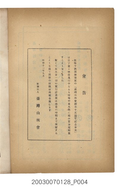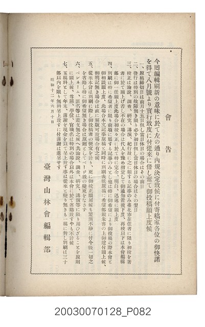 2003.007.0128 社團法人臺灣山林會發行《臺灣的山林》第138號