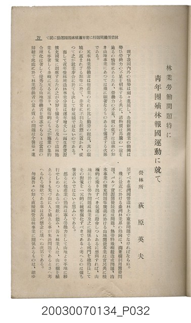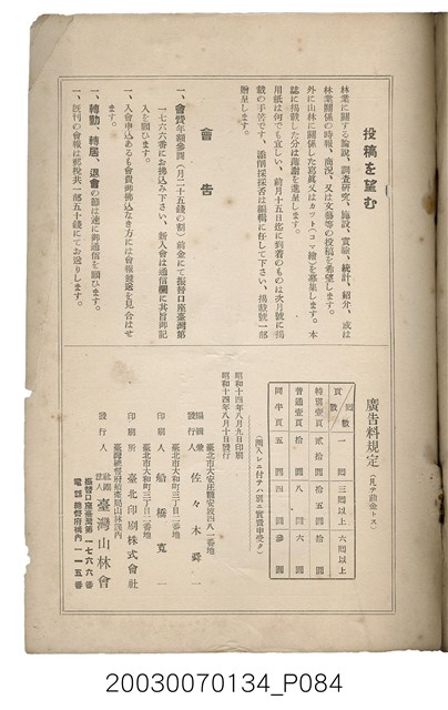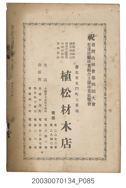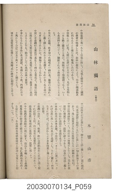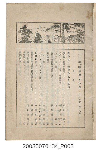 2. 本書原名為《臺灣山林會報》,最早發行於大正12年(1924),於第80期後更改為《臺灣の山林》。日治時期臺灣總督府為有效利用森林,於1925年實施了森林計劃,主要針對治水及國土保安。