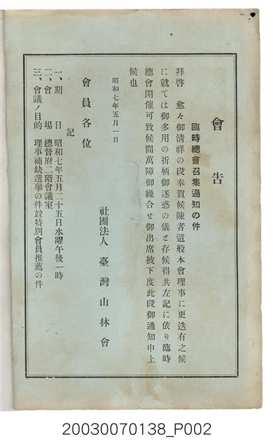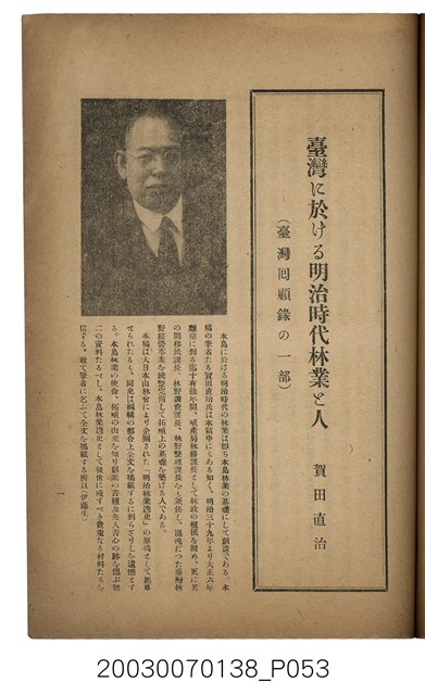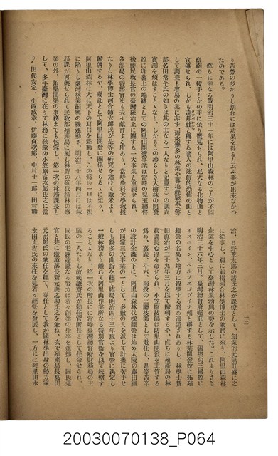 2. 本書原名為《臺灣山林會報》,最早發行於大正12年(1924),於第80期後更改為《臺灣の山林》。日治時期臺灣總督府為有效利用森林,於1925年實施了森林計劃,主要針對治水及國土保安。