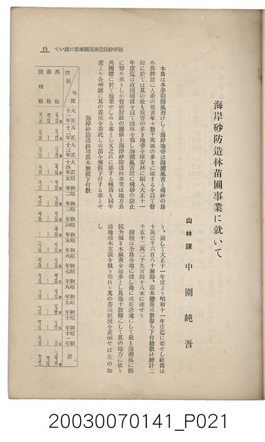 2. 本書原名為《臺灣山林會報》,最早發行於大正12年(1924),於第80期後更改為《臺灣の山林》。日治時期臺灣總督府為有效利用森林,於1925年實施了森林計劃,主要針對治水及國土保安。
