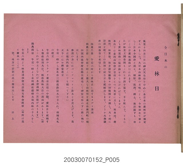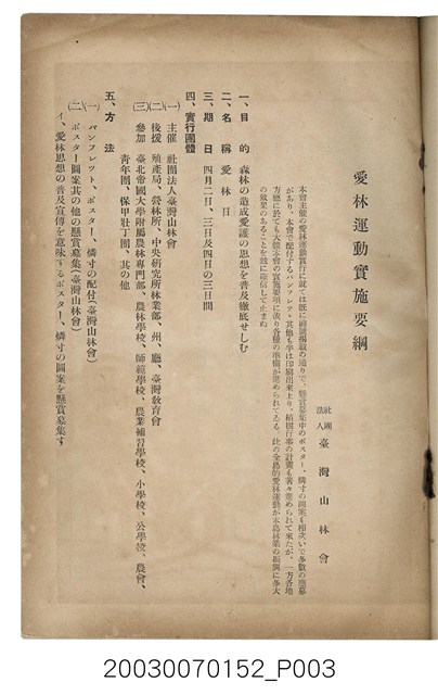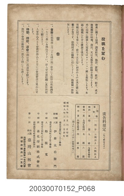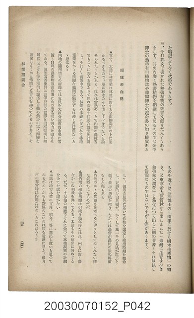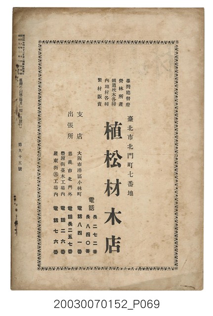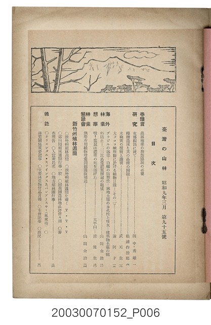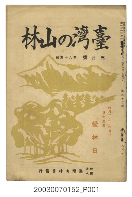 2. 本書原名為《臺灣山林會報》,最早發行於大正12年(1924),於第80期後更改為《臺灣の山林》。日治時期臺灣總督府為有效利用森林,於1925年實施了森林計劃,主要針對治水及國土保安。