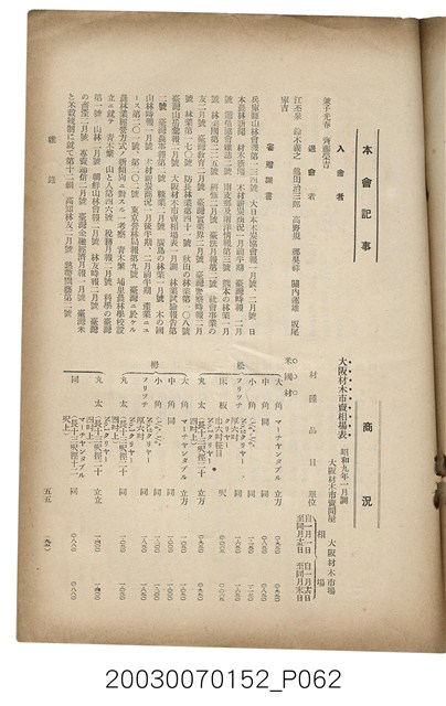 1. 本物件為社團法人臺灣山林會發行的《臺灣的山林》,內容主要收錄了許多日本學者針對臺灣的山林地區、林業、公園事業、礦業等領域的研究發表文章。本書於昭和9年3月6日發行,為每月初發行的刊物;此為第95號,即是三月號。封面上有紅色字體註明:四月二、三、四日は日本全國愛林日。本卷所收錄的文章有:農林兩業的聯繫協調的必要、支那的桐油、木麻黃的種類和識別、白蟻的防禦法以及有關於新竹州殖林週的報導、愛林運動實施要綱等等。