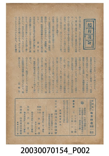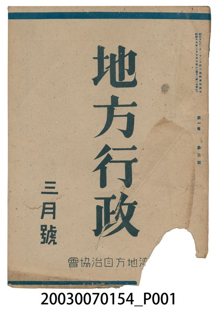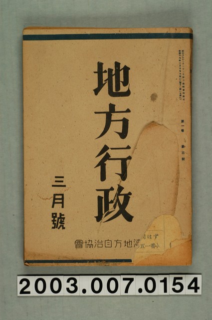 2003.007.0154 臺灣地方自治協會出版《地方行政》3月號