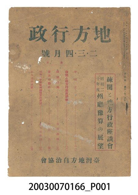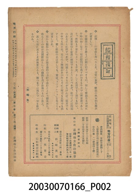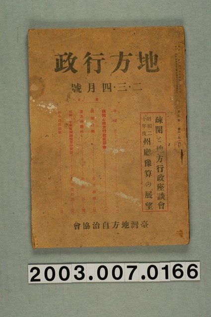 2003.007.0166 臺灣地方自治協會出版《臺灣地方行政》2、3、4月號
