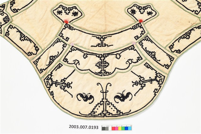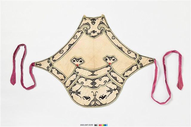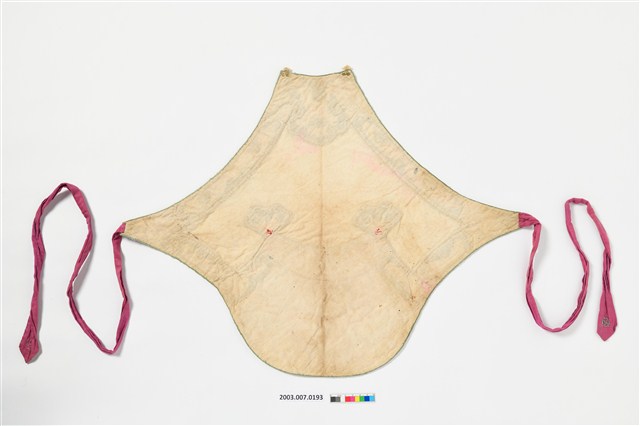 2003.007.0193 米白地彩繡蝴蝶紋下端寬形附綁帶肚兜