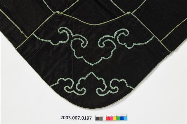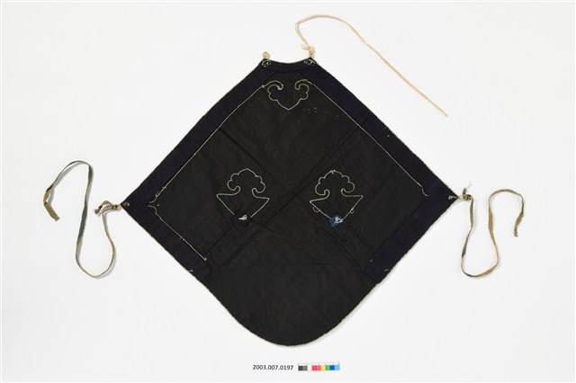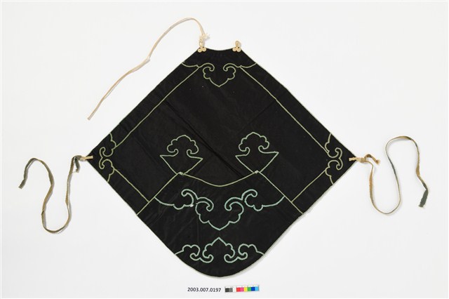 2003.007.0197 黑緞地鎖繡雲紋附綁帶菱形肚兜