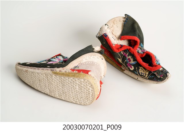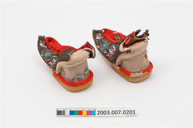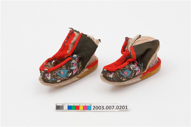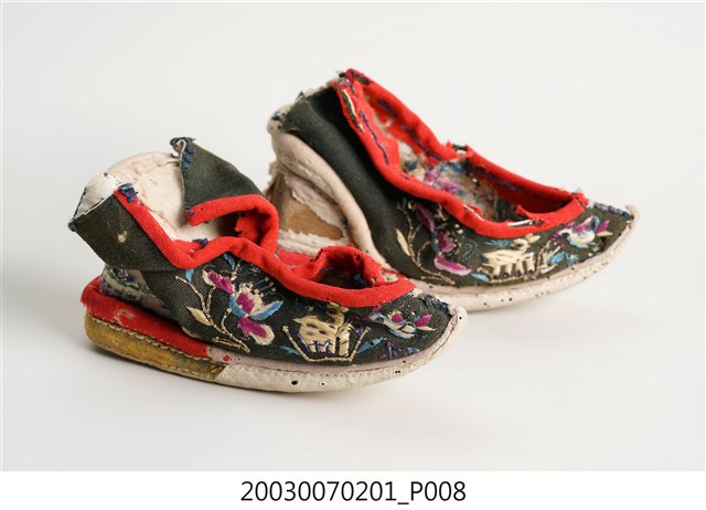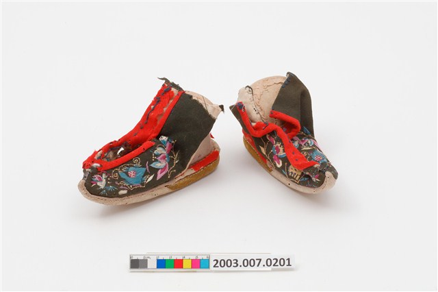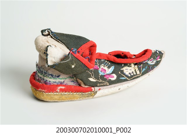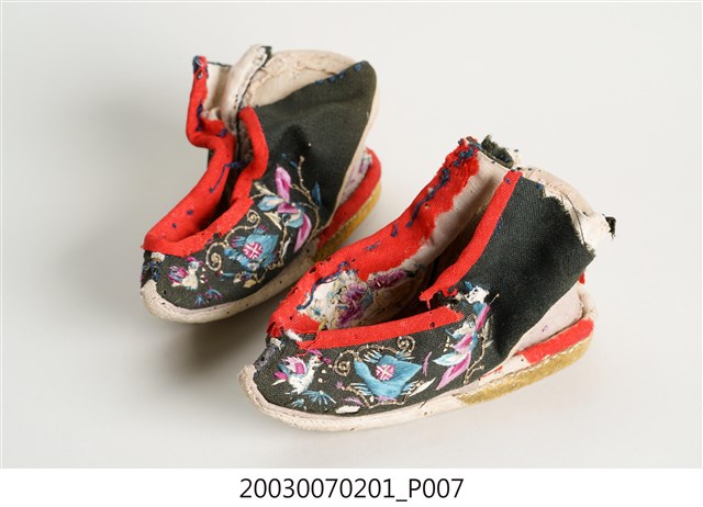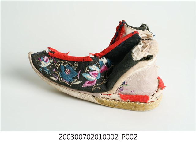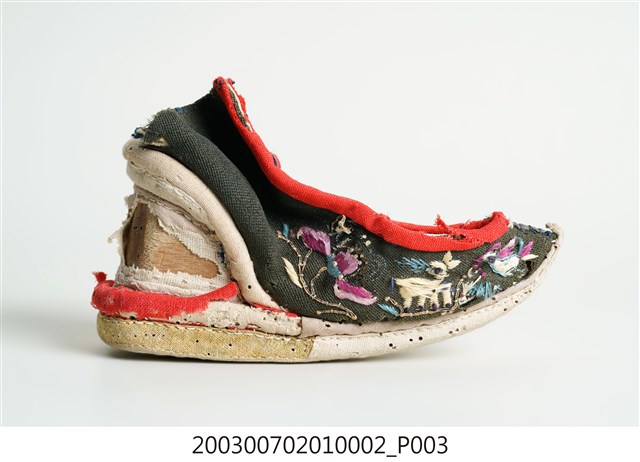 2003.007.0201.0001 黑地繡花高跟弓鞋左足