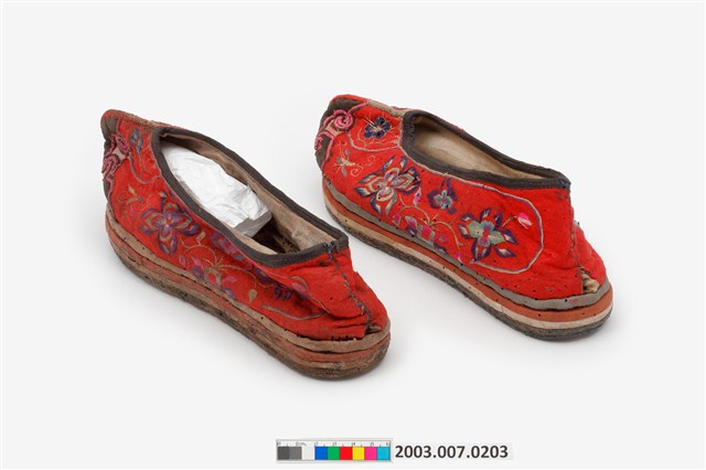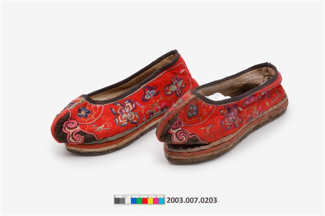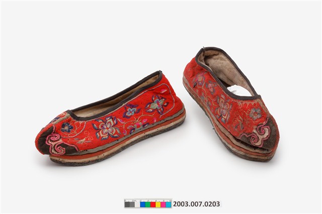 2003.007.0203.0001 紅地繡花客家女鞋左足