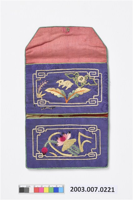 2003.007.0221 白兔蕉葉紋兩摺褡褳荷包