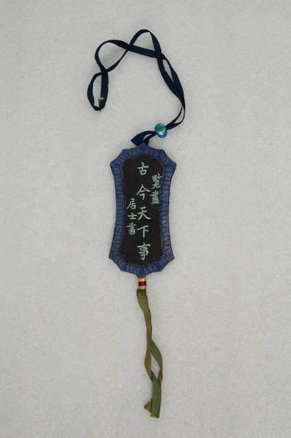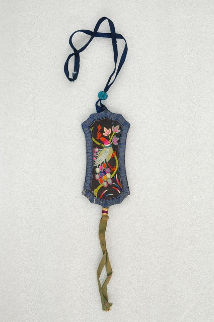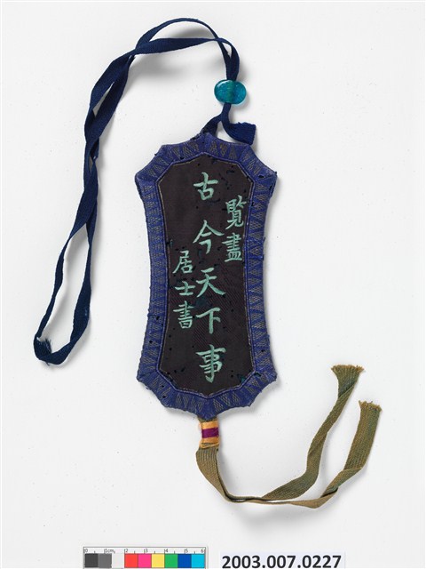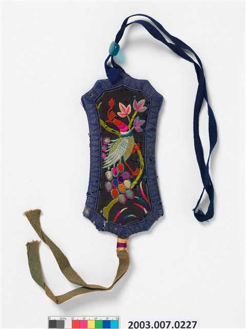2003.007.0227 黑綢地繡孔雀紋詩文眼鏡袋