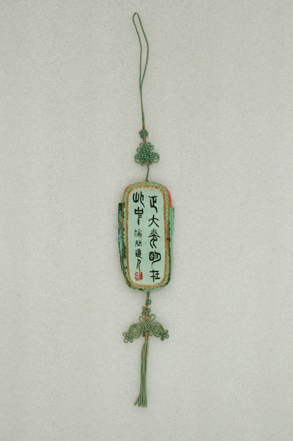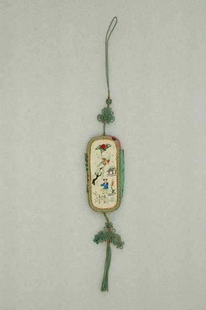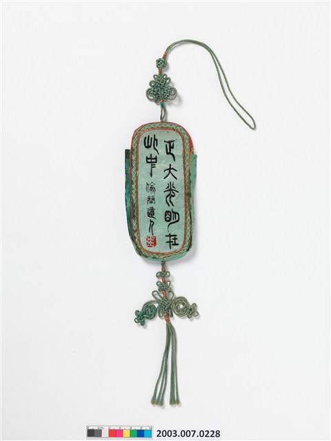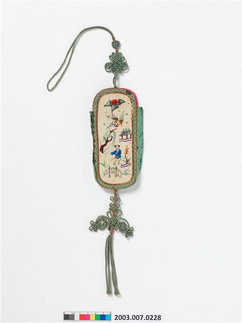 2003.007.0228 青白雙面綢地嬰戲彩繡詩文眼鏡袋