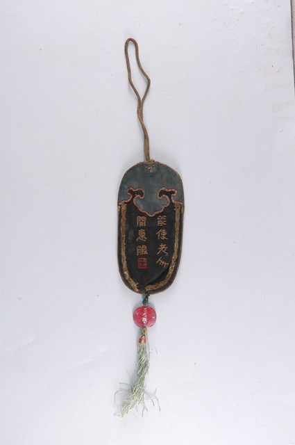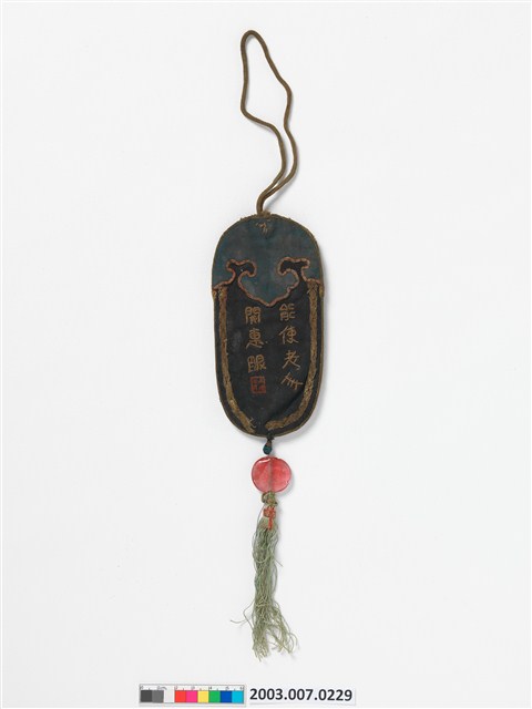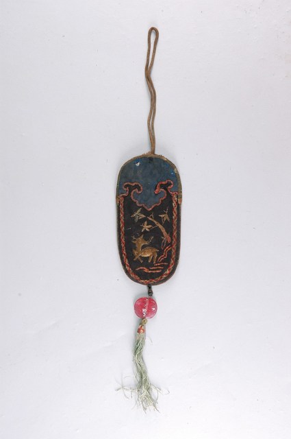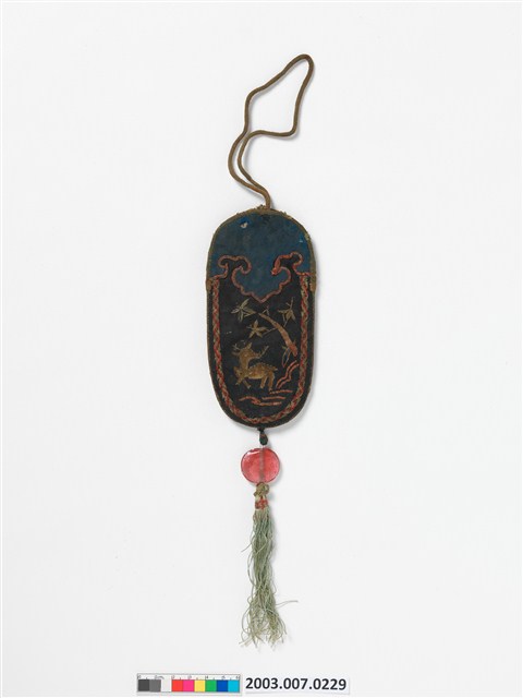 2003.007.0229 藍黑色棉地繡竹鹿紋詩文眼鏡袋